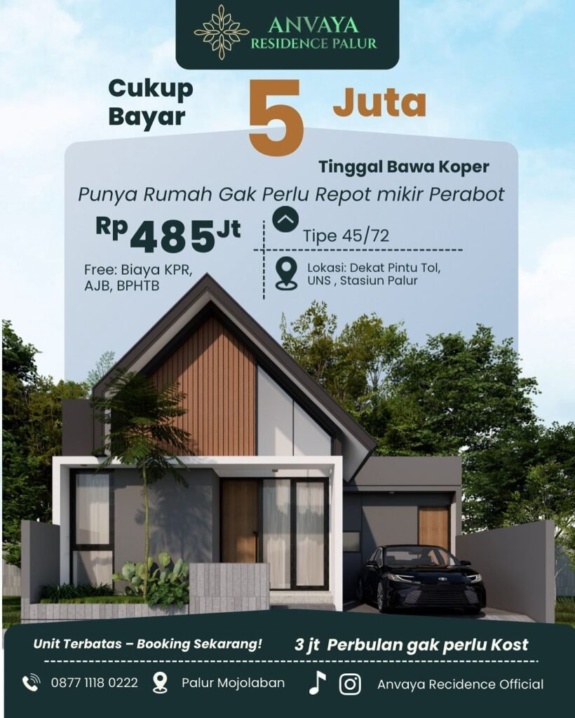 rumah yang membuatmu bangga menyebutnya “rumah saya”. Di Anvaya, ada pilihan unit sesuai kebutuhan—mulai dari yang compact, ideal untuk awal membangun keluarga, hingga yang lebih luas untuk kamu yang ingin ruang hidup yang lebih lega. Coba datang lihat sendiri…
